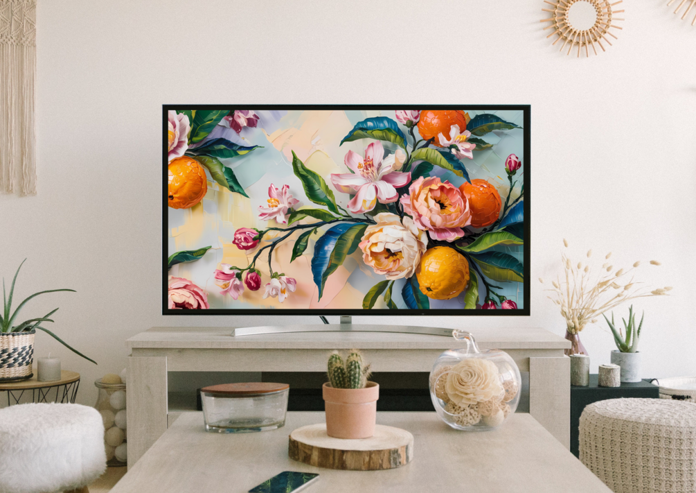 Elevate your space with the vibrant charm of Citrus Bloom Elegance, a stunning wallpaper design blending lush oranges, delicate pastel flowers, and rich impasto textures. This hand-painted-inspired masterpiece features warm peach, soft pink, and fresh green hues on a light, airy background, creating a refreshing and artistic atmosphere. Perfect for adding a touch of nature’s beauty and sophistication to any room, this high-resolution design offers both elegance and energy